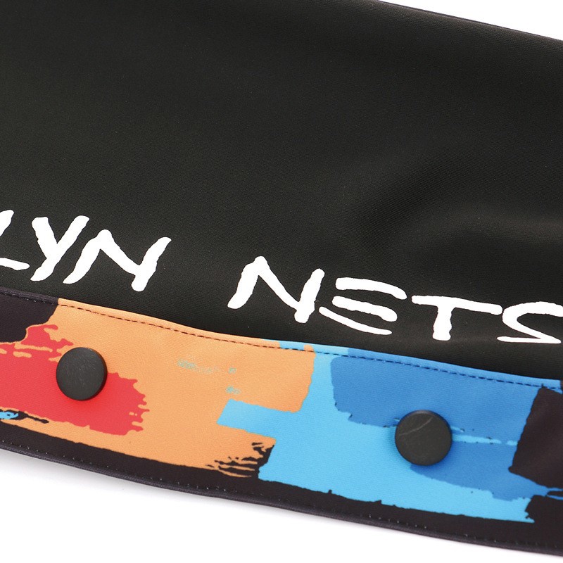 На бедре или штанине расположен официальный логотип Brooklyn Nets в виде щита и баскетбольного мяча, подтверждающий подлинность изделия.