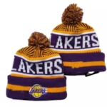 Модель выполнена в классических командных цветах. На отвороте расположен объемный вышитый логотип LA Lakers, а на основной части — жаккардовое название команды.
